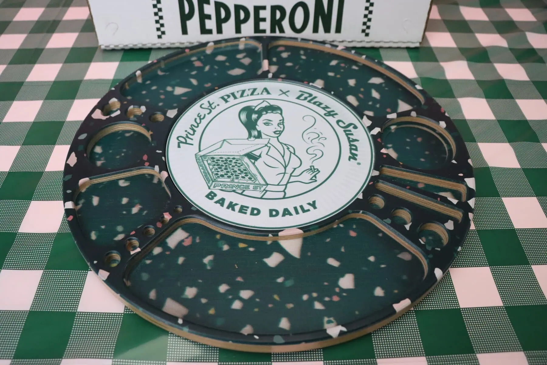 The Baked Daily edition spinning tray brings this legendary Prince St. Pizza collab to your living room. Built for function, flair, and flavor, this tray keeps everything organized and within reach and looks good doing it.
