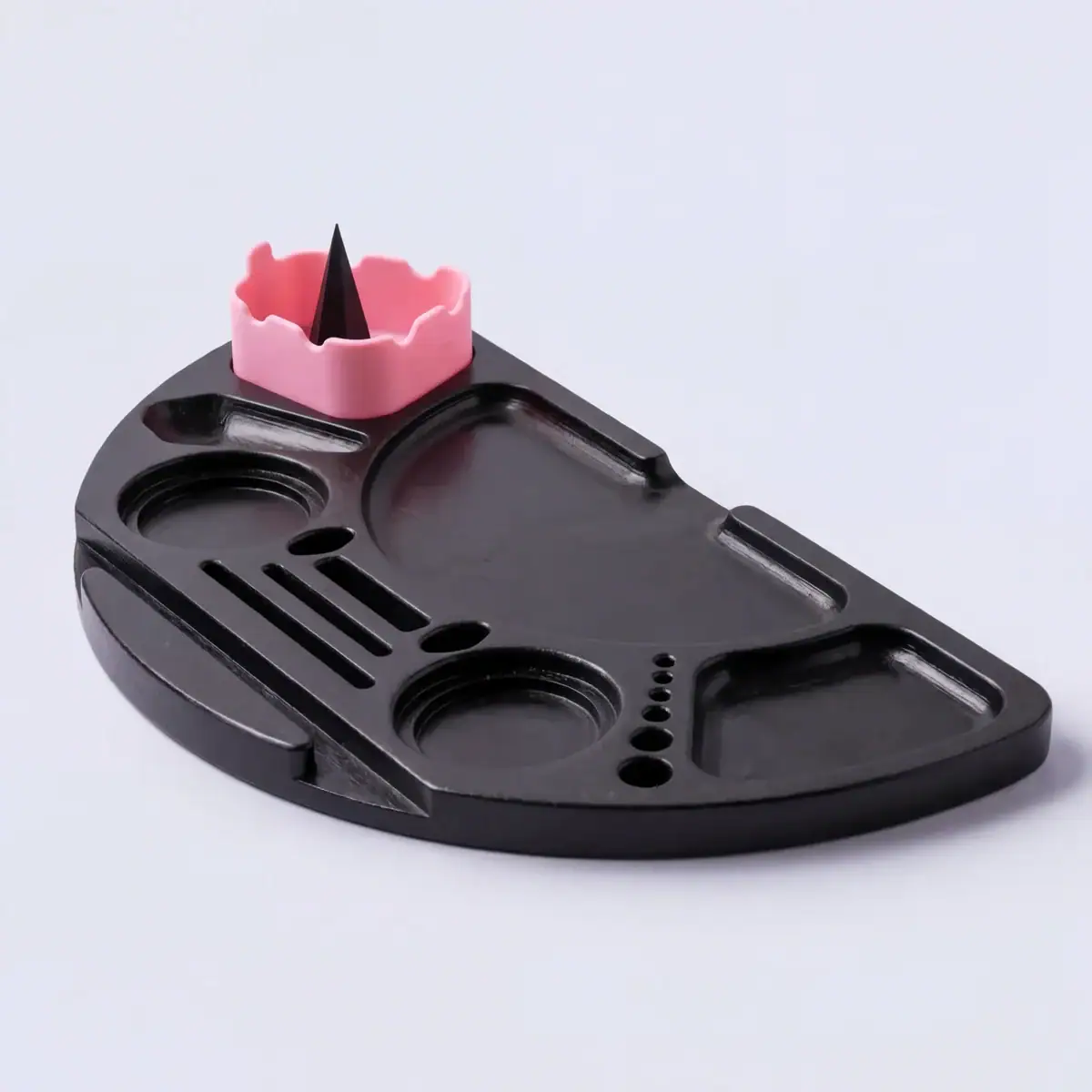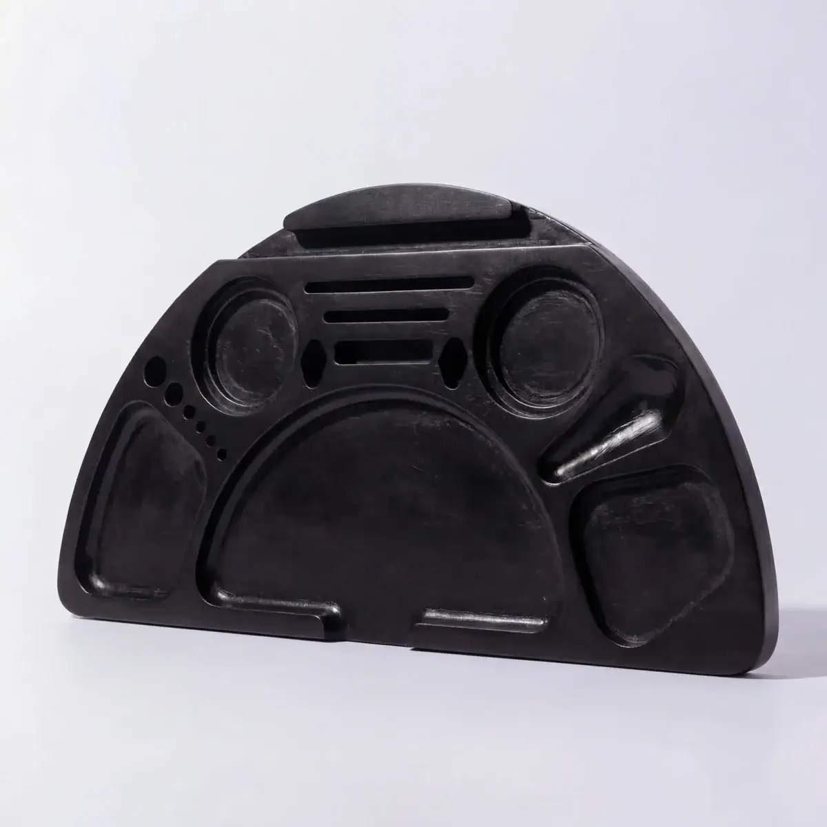The Half Moon Tray has everything the serious roller needs. Choose from three areas to break down material, including a cone filler slot. A centered notch lets rollers fill papers and cones or return material to your storage container easily.