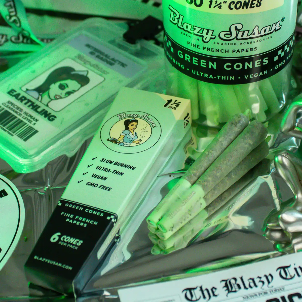 At Blazy Susan, color isn’t just aesthetic, it’s purpose. Our Pink Papers support cancer charities, our Purple Papers champion mental health awareness, and now our Green Cones celebrate and protect our beautiful Planet Earth. With every purchase, you’re joining a community that believes every smoke circle is also a space for care, connection, and giving back, because in all the galaxies we dream about, Earth is the only one we’ve got.