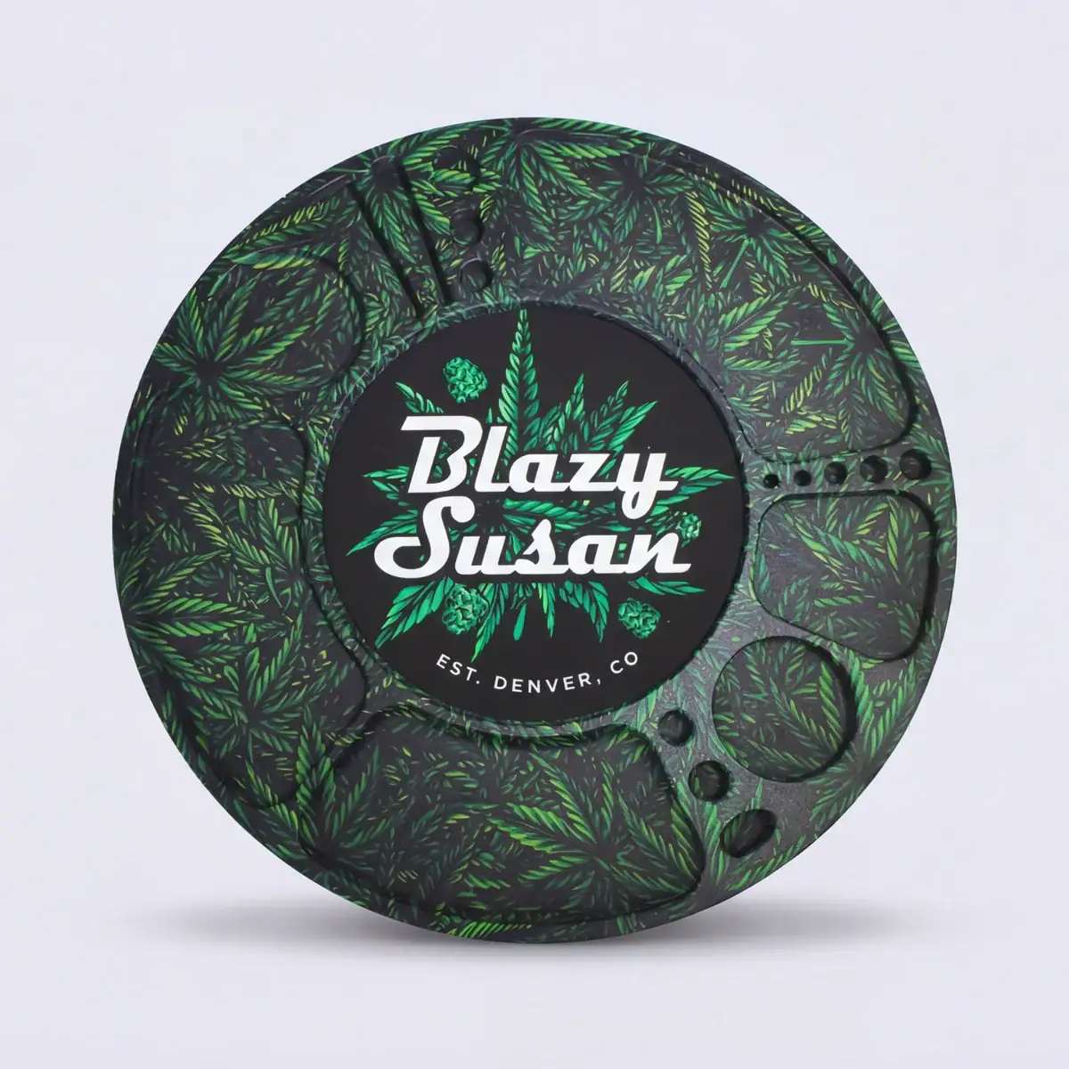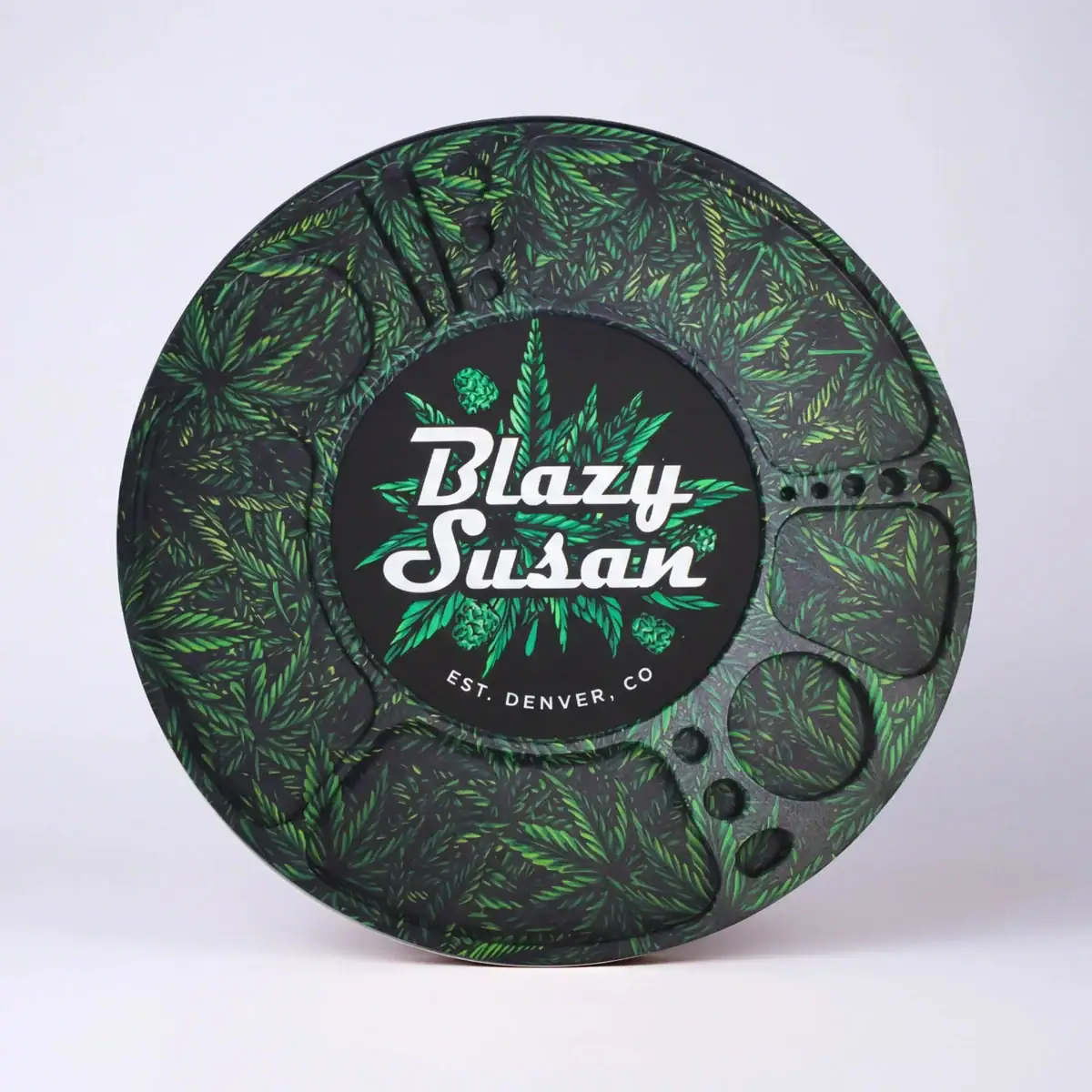 The Blazy Susan Spinning Rolling Tray features an innovative design with small compartments for all different types of smoking accessories and supplies including lighters, pre rolls, bangers, your cell phone, and more. This tray was built from the ground up through consumer feedback and has more functionality than any other rolling tray on the market. The Blazy Susan Spinning Rolling Tray is truly revolutionary, and was built by smokers for smokers. Give it a spin – your coffee table will never be the same!