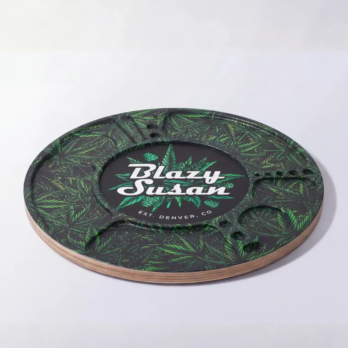The Blazy Susan is 15.5” in diameter and is constructed from high quality birch. It is hand finished with a fine Italian varnish to ensure a sleek and smooth rolling experience. Blazys make a perfect gift for any smoker, from casual to connoisseur.