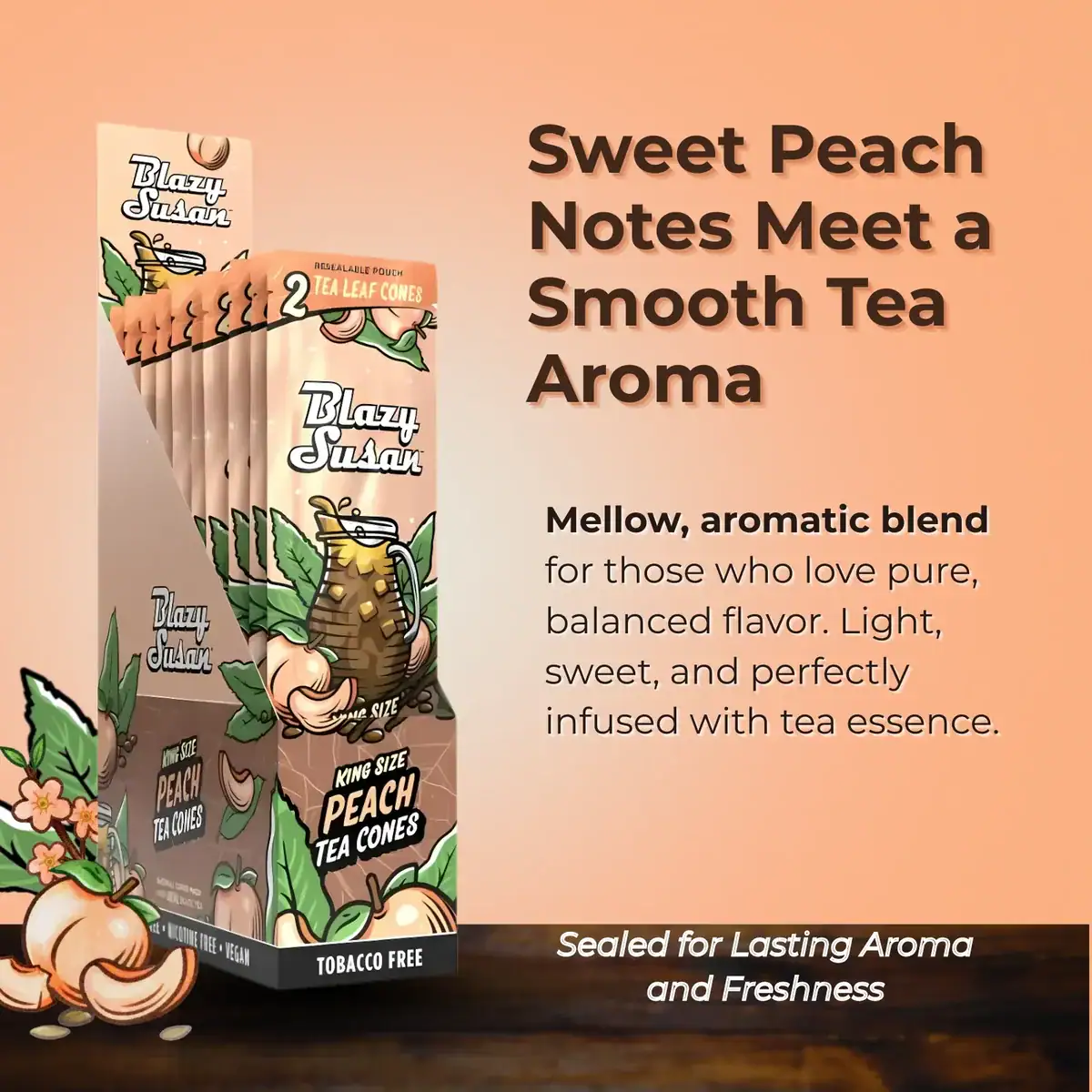 Taste the flavor, spark the vibe — Blazy Susan’s Peach Tea Cones deliver a slow, flavorful burn with a sweet and mellow peach tea twist. Made from our signature tobacco-free and nicotine-free tea leaf blend, these wraps and cones are perfect for those who want a smooth, easy roll or an effortless pack with rich, aromatic flavor.