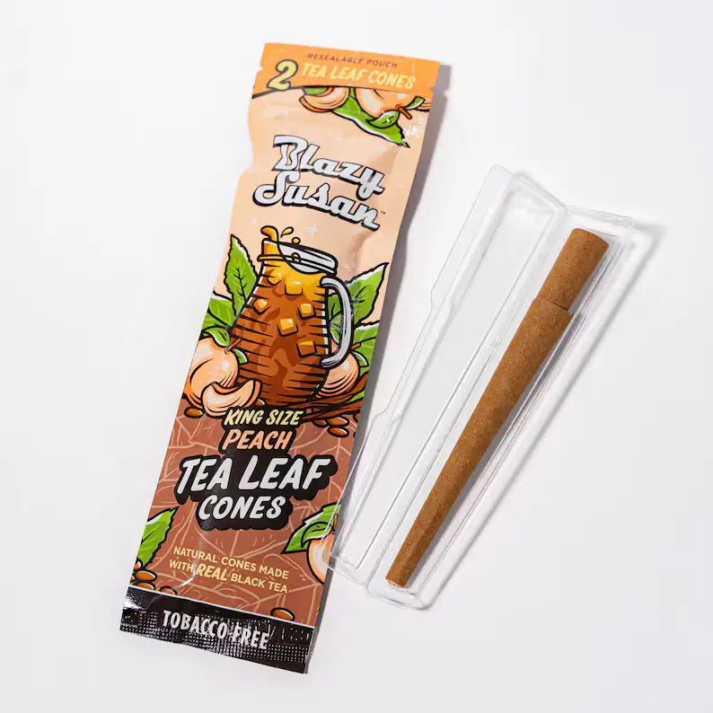 Taste the flavor, spark the vibe — Blazy Susan’s Peach Tea Cones deliver a slow, flavorful burn with a sweet and mellow peach tea twist. Made from our signature tobacco-free and nicotine-free tea leaf blend, these cones are perfect for those who want a smooth, easy roll or an effortless pack with rich, aromatic flavor.