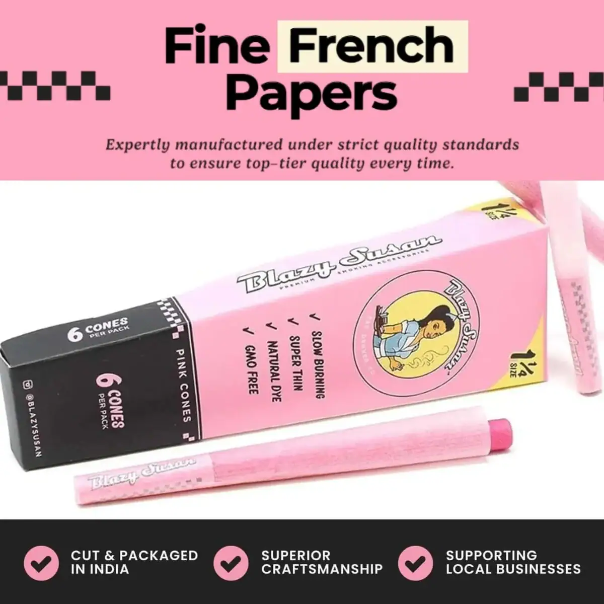 | Included | Pink 53mm Shorty Cones 12ct (1), Pink 1-1/4 Cones 6ct (1), Pink King Size Cones 3ct (1) |