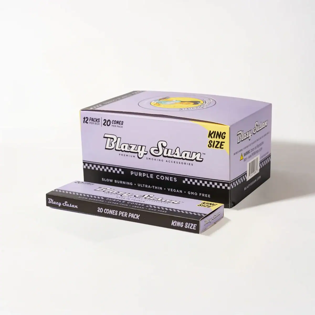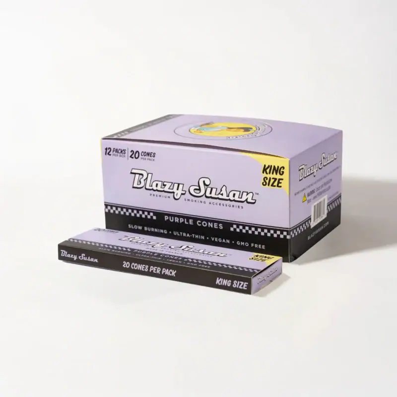 Introducing the 20ct Blazy Susan Pre-Rolled Cones! Packaged in a compact, eco-friendly box, they’re perfect for at-home use or on-the-go convenience. Whether you’re rolling for yourself or sharing with friends, Blazy Susan cones make the experience as stylish as it is enjoyable.