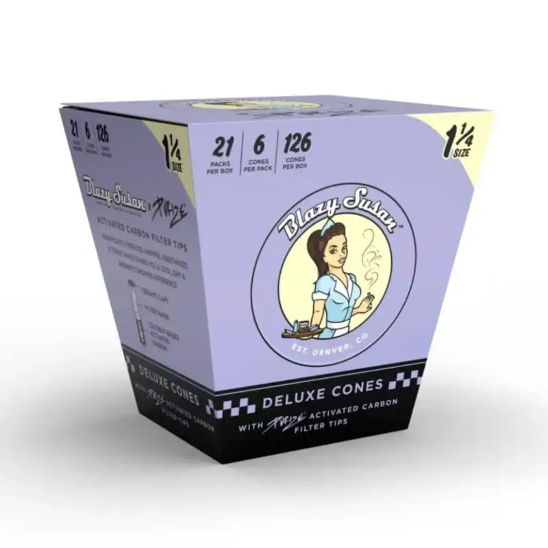 Blazy Susan x Purize: Purple Pre Rolled Cones with Activated Carbon Filters combining our iconic purple pre-rolled cones with German-engineered activated carbon filter technology. The smoothest, cleanest hit every time — just fill, pack, and spark. No rolling required.