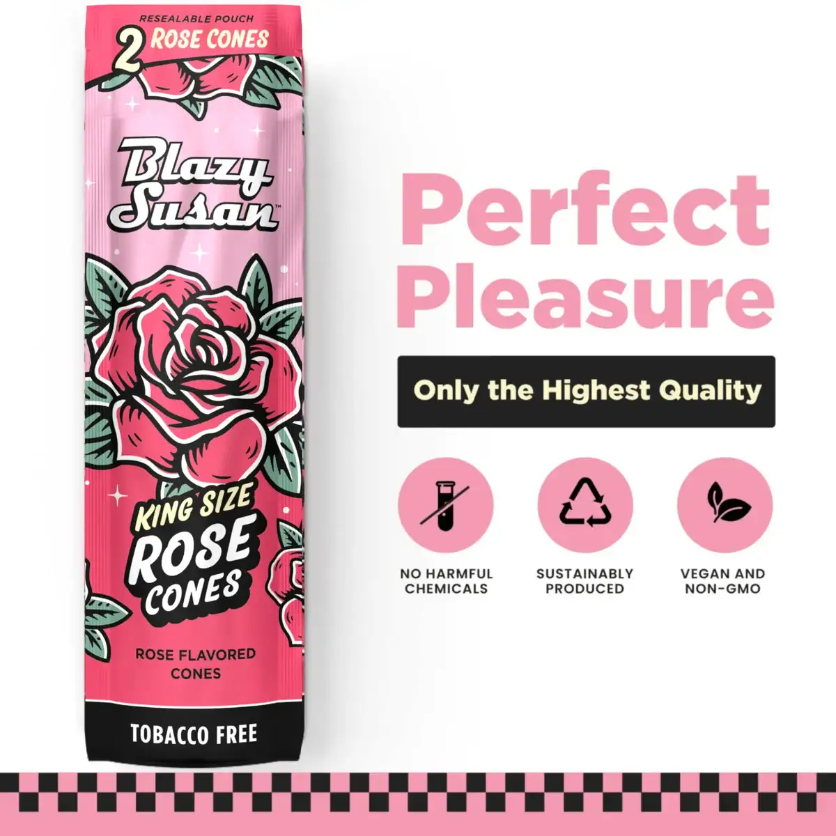 Rose Wrap Pre Rolled Cones Full Box crafted from wood-based papers infused with rose extracts for a floral, aromatic session. Full box with 10 packs, perfect for stocking up or sharing with your crew. Tobacco-free and nicotine-free.