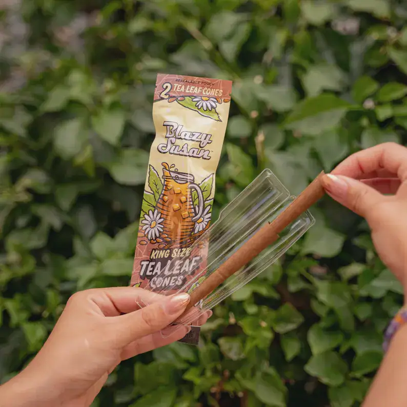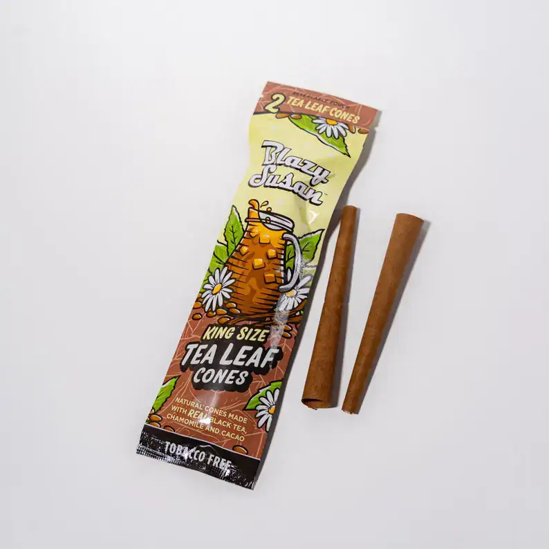 Tea Leaf Pre Rolled Cones crafted from real black tea leaf, chamomile, and cacao for a smooth, aromatic session. Slow-burning, vegan cones ready to pack right out of the pouch, tobacco-free and nicotine-free.