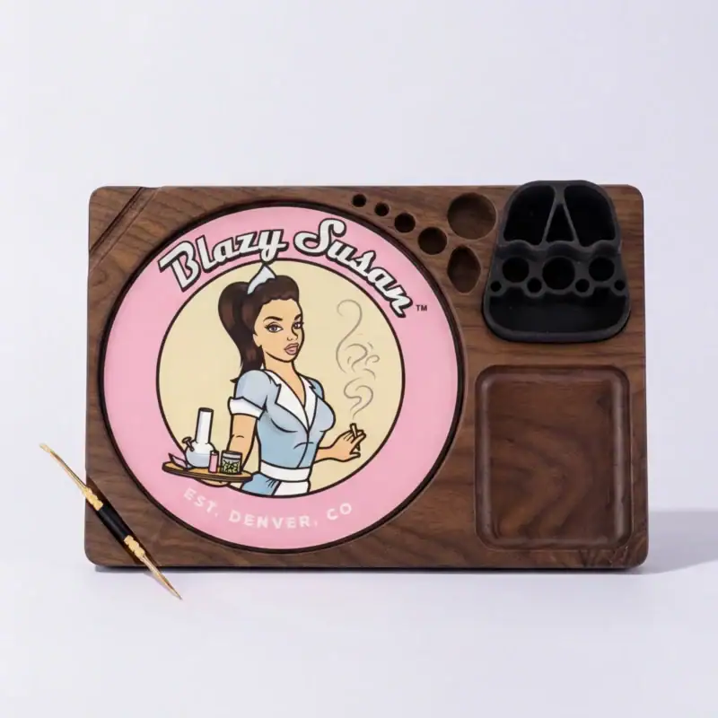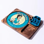 I bought this tray for my boyfriends as a Christmas present last year and it has been the best thing for him to keep his smoke area nice and organized and not looking a mess. It also perfectly matched the wood his coffee table is made out of. Couldn’t have gotten him a better tray. He absolutely loved it. He’s a huge smoker who actually really loves Blazey Susan, so he didn’t mind the cute Blazey Susan lady insert. Could have picked something different but he liked it!