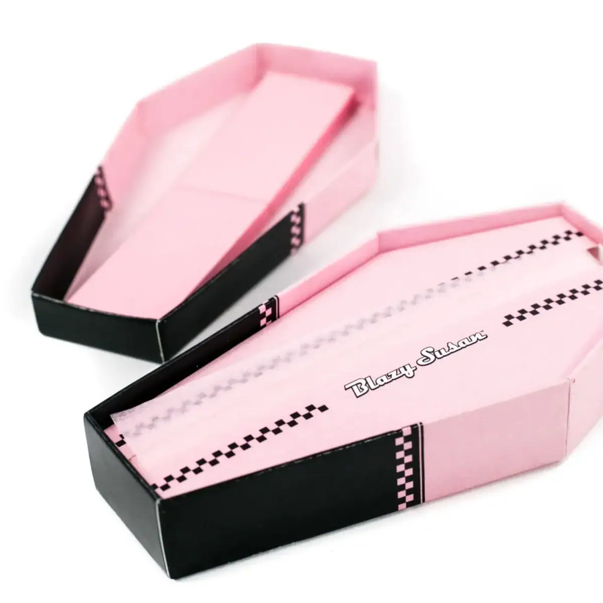Pink Rolling Paper Coffin Kit – Limited Edition featuring 32 pink papers and 32 pink tips packed in a highly collectible Susan coffin case. The same iconic Blazy Susan pink rolling papers you know and love, now in a deluxe, limited edition kit.