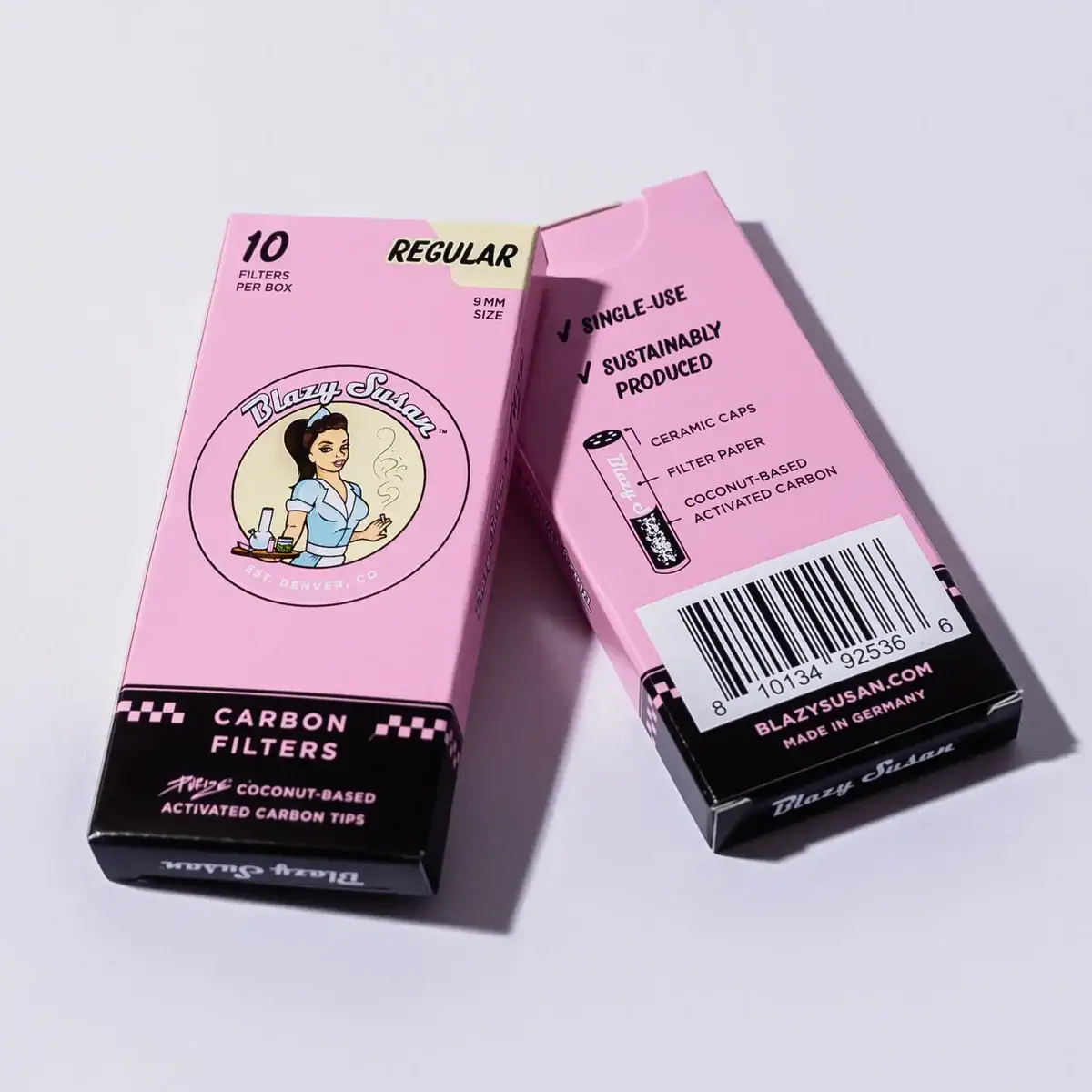 Purize Active Carbon Filter Tips – 10 Count Pack designed and produced in Germany with innovative coconut activated carbon technology. Smooth your smoke by filtering out unwanted elements, available in pink and purple, sustainably produced and biodegradable.