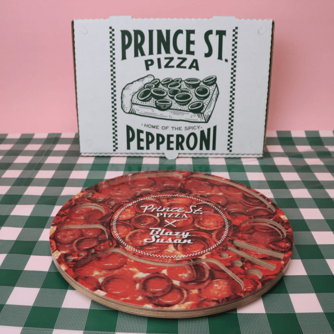 Blazy Susan teamed up with legendary Prince St. Pizza to serve up a collab that’s equal parts smoke and slice. This limited edition full-print Blazy Susan tray looks just like a hot Prince St. pie: down to the last pepperoni. And it spins smoother than a pizza cutter.
